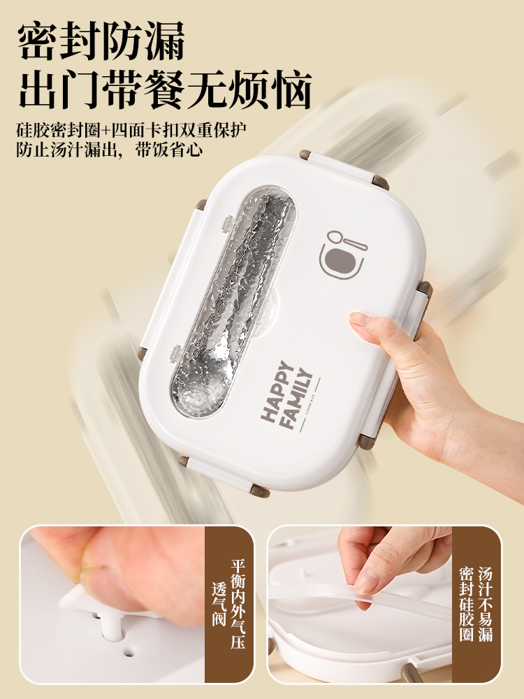悦味饭盒LB2524-单格/两格(白棕) 悦味饭盒LB2524